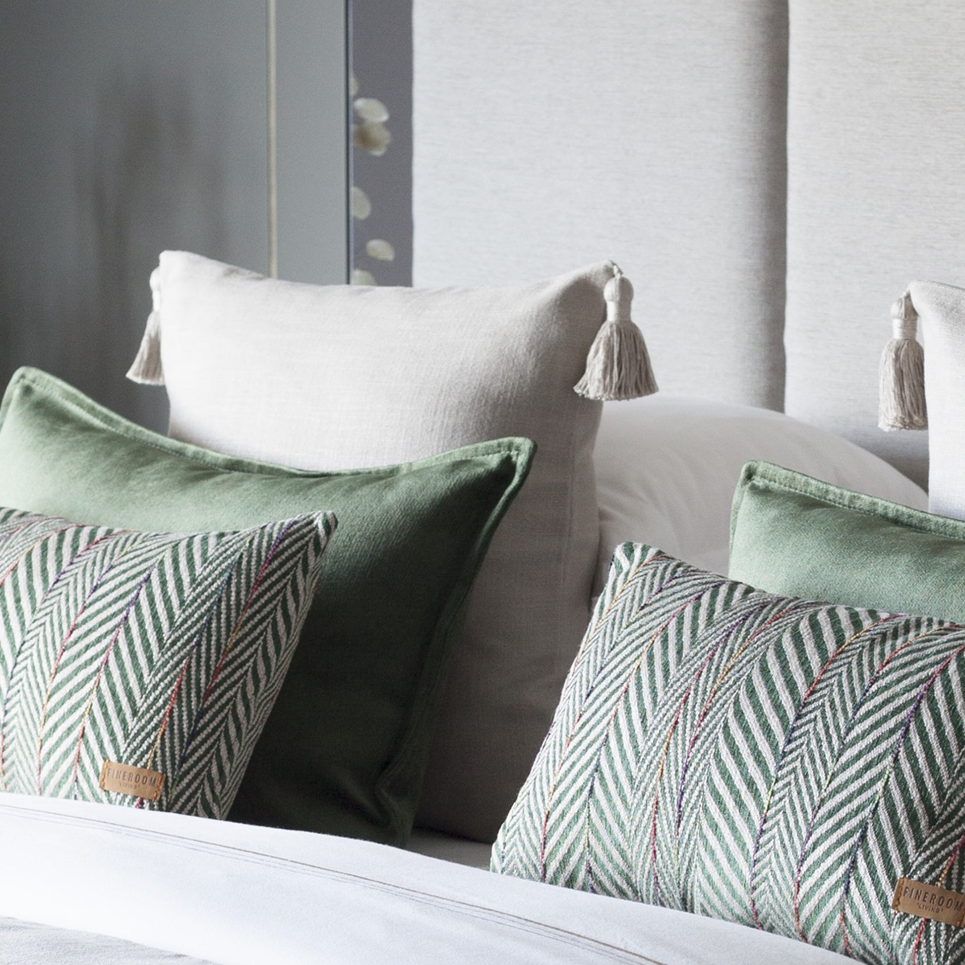 Loom Keten Püsküllü Yatak Runner + 6 Yastıklı Set Eliza Sense - Yeşil, sadece bir dekoratif obje seti değil, aynı zamanda modern zarafetin ve konforun mükemmel birleşimini yansıtan bir yaşam tarzı.