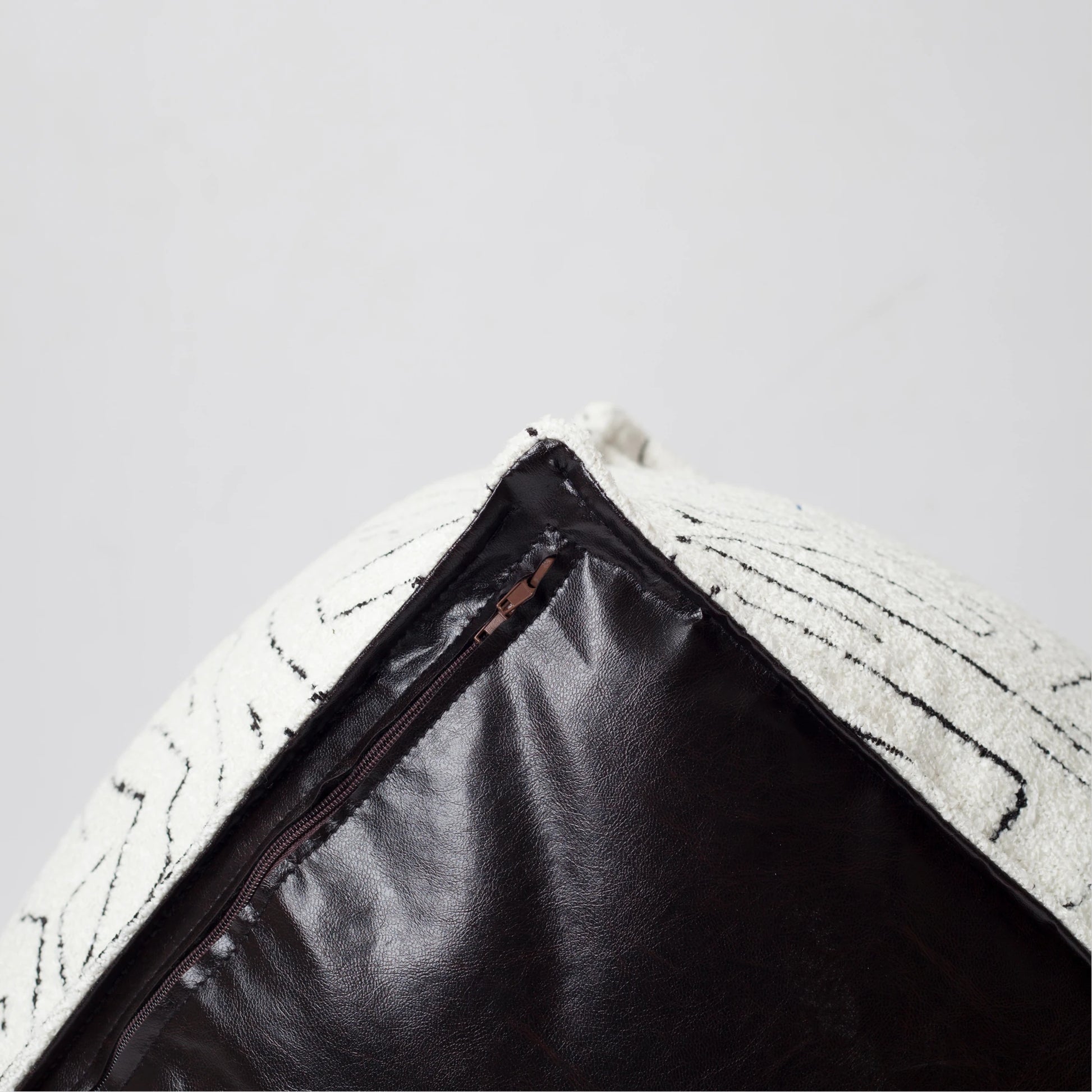 Pufun tabanında kullanılan deri detay, hem şık bir görünüm hem de kolay temizlik imkanı sunar.