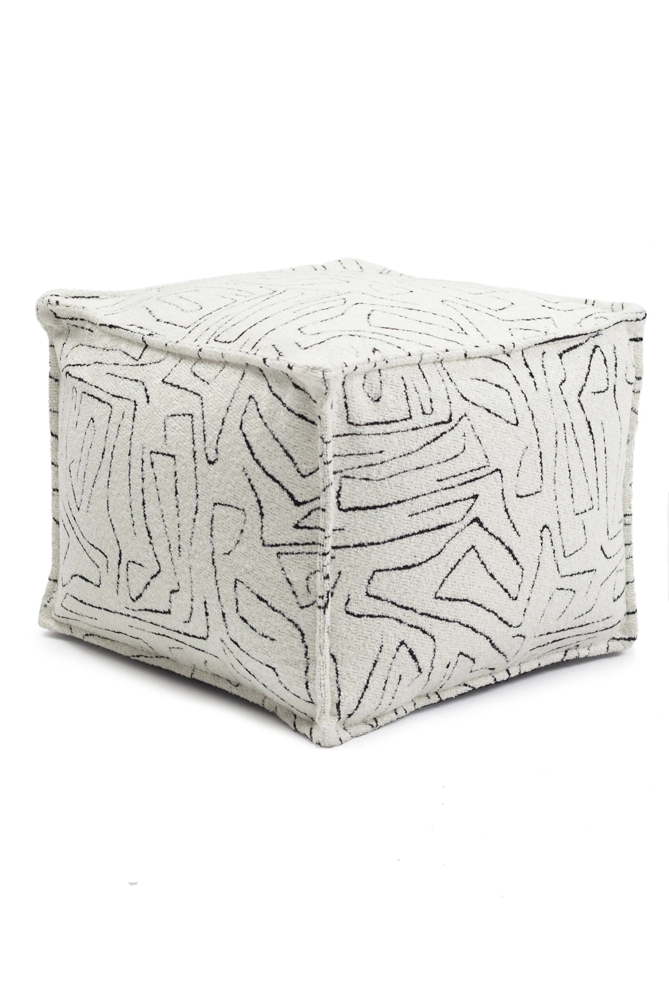Amorf - Soyut Desenli Puf - Beyaz & Siyah