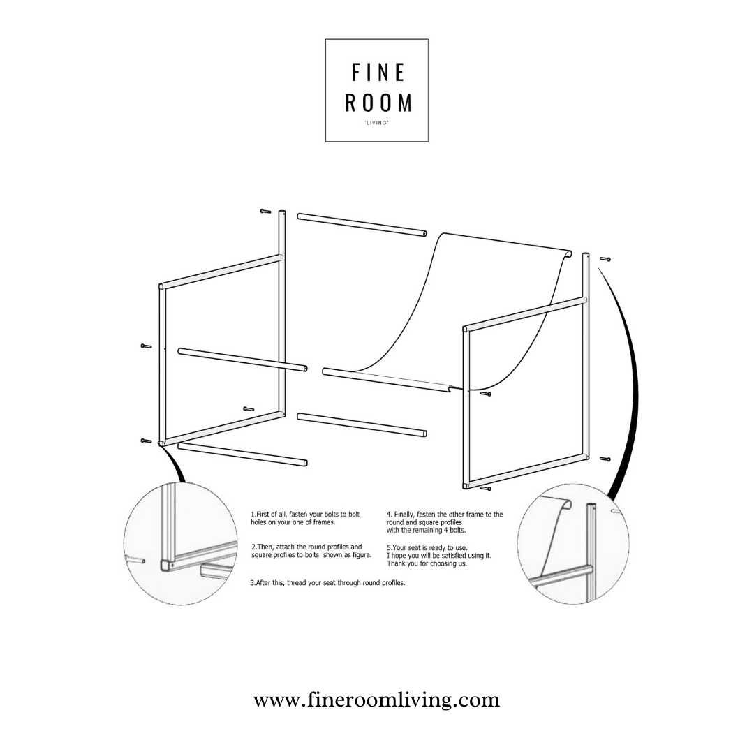 Demonte olarak gönderilen Bernie Chair, kurulum kılavuzu sayesinde kolayca monte edilebilir.