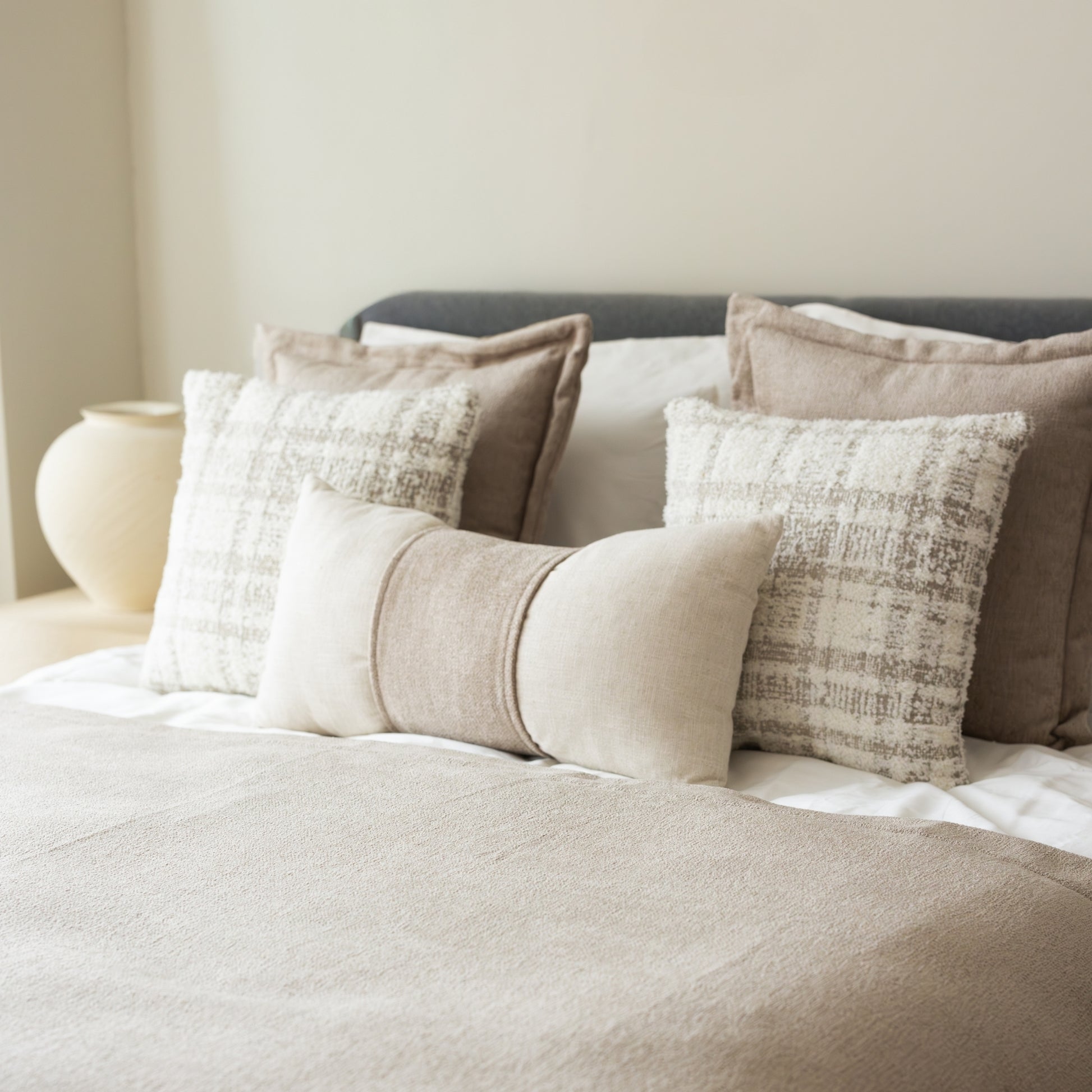 Borla & Argos - 5'li Kırlent ve Geniş Yatak Runner Set - Açık Bej