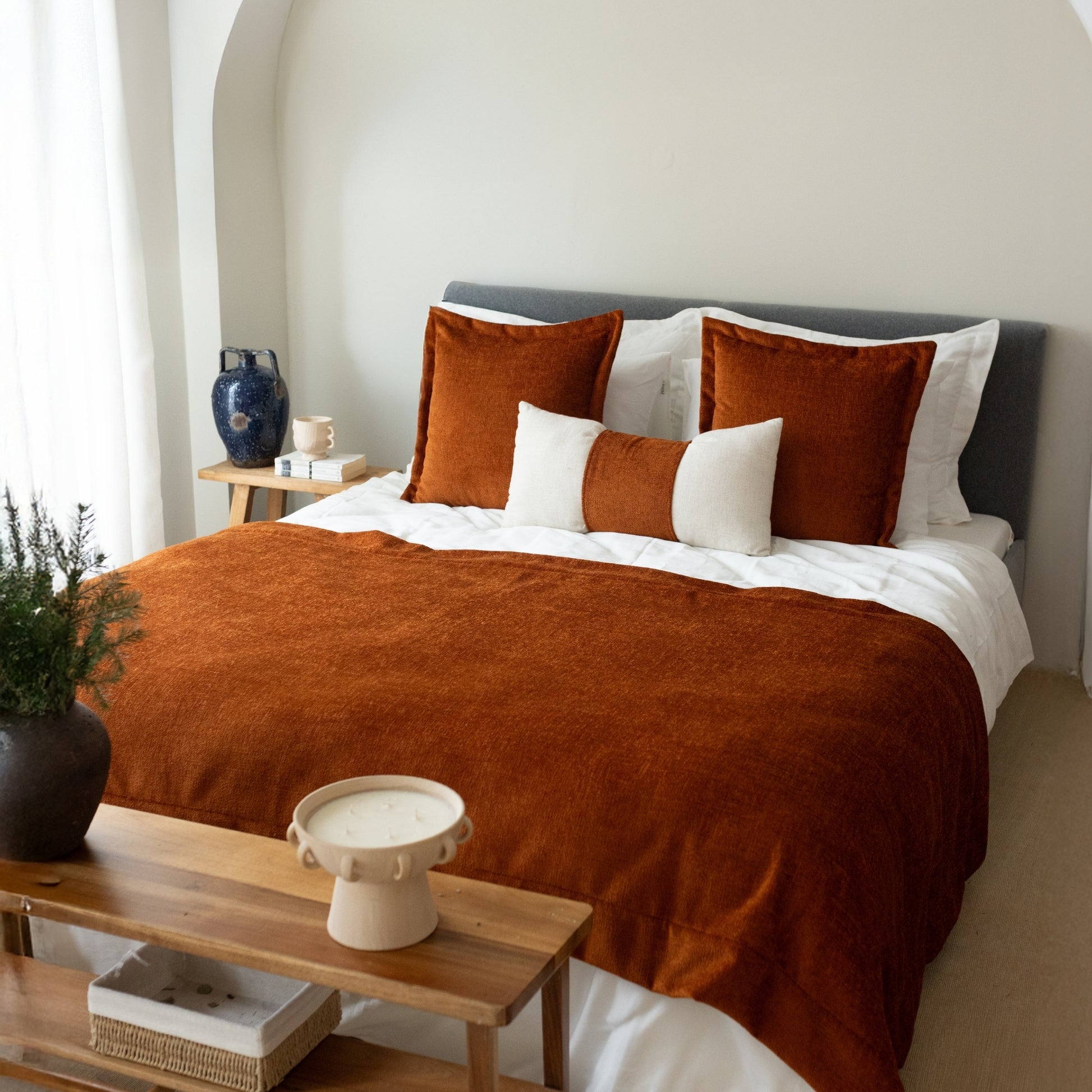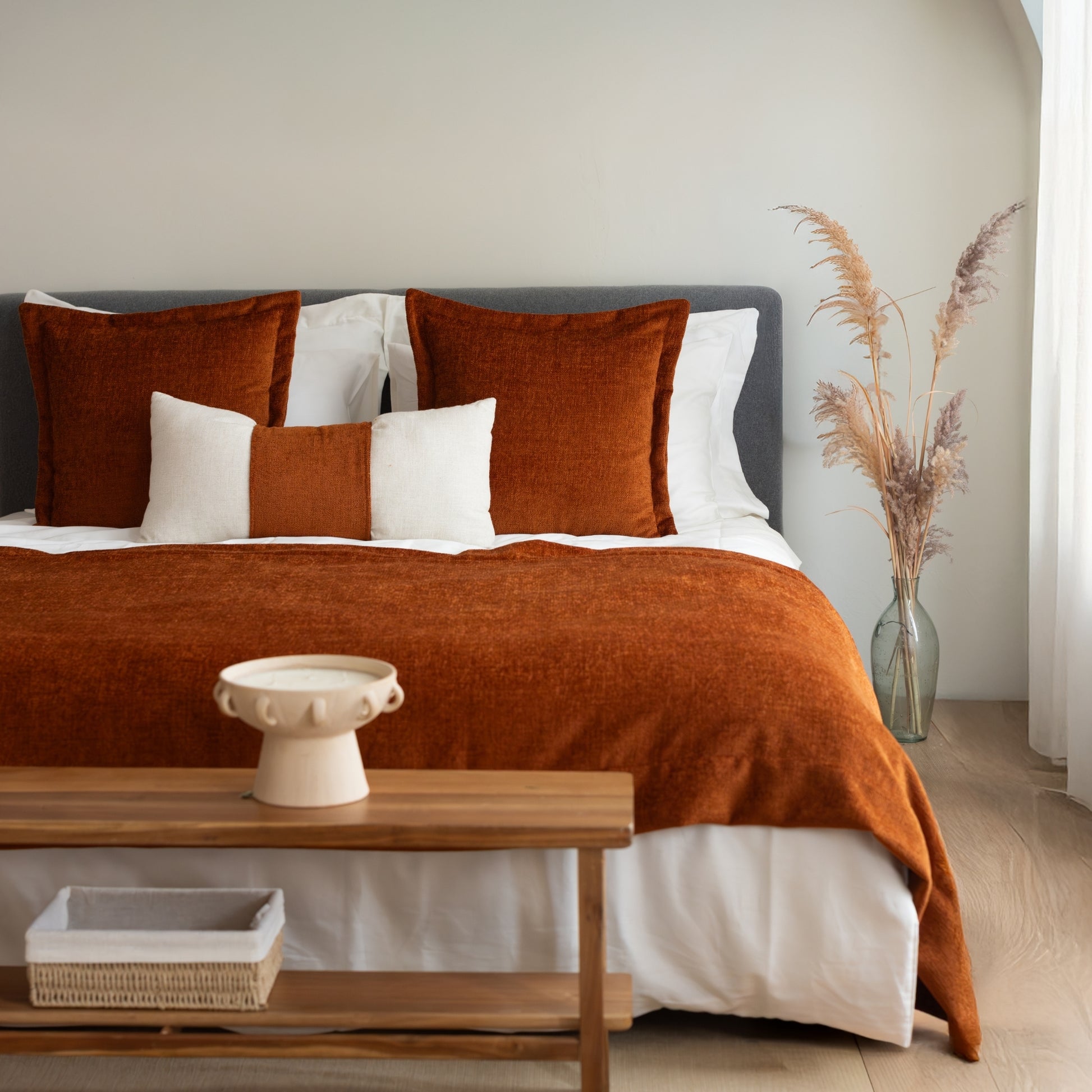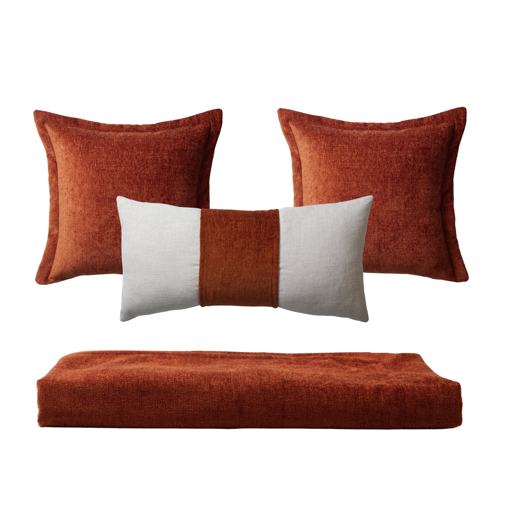 Borla & Belt - 3'lü Kırlent ve Geniş Yatak Runner Set - Kiremit Turuncu