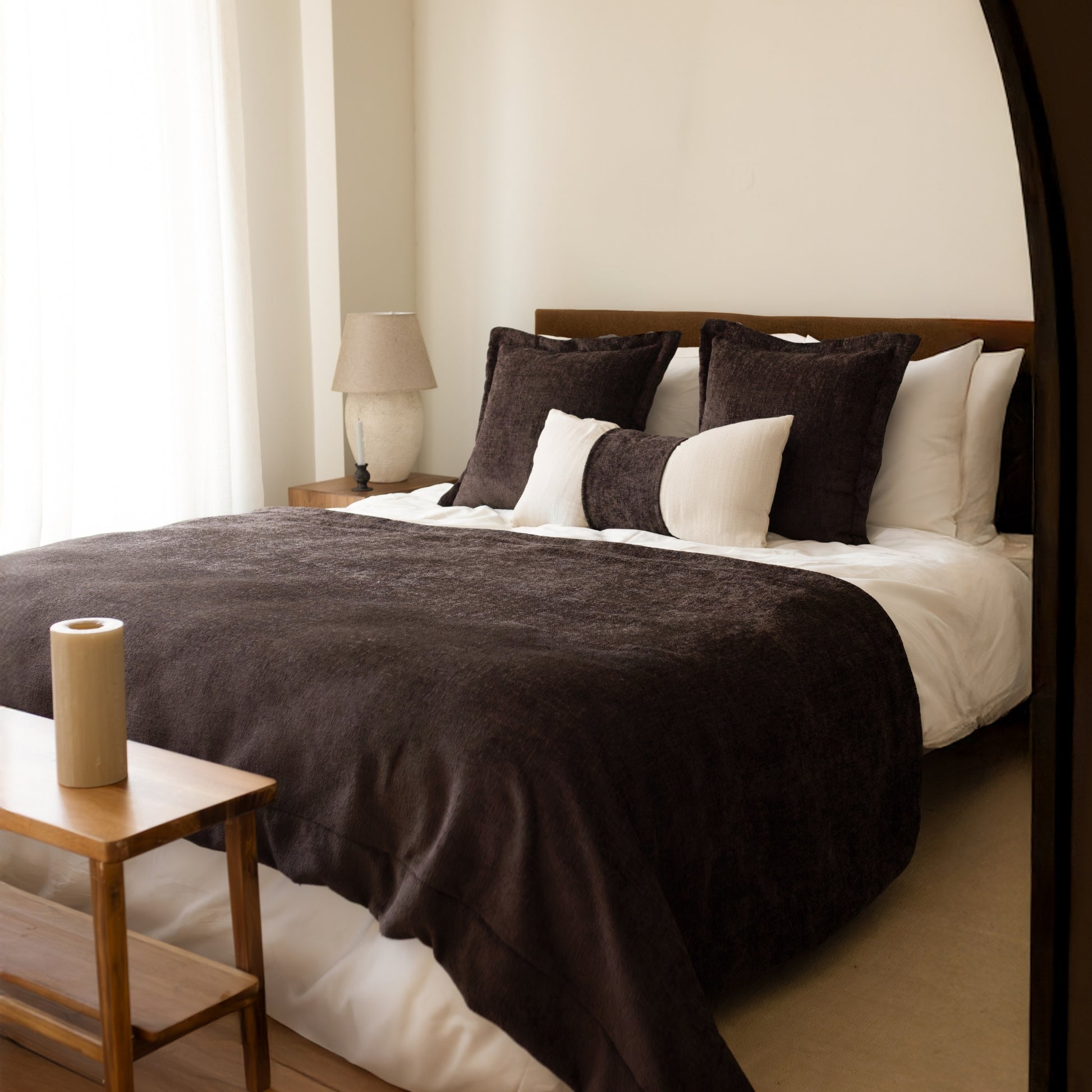Borla & Belt - 3'lü Kırlent ve Geniş Yatak Runner Set - Koyu Kahve