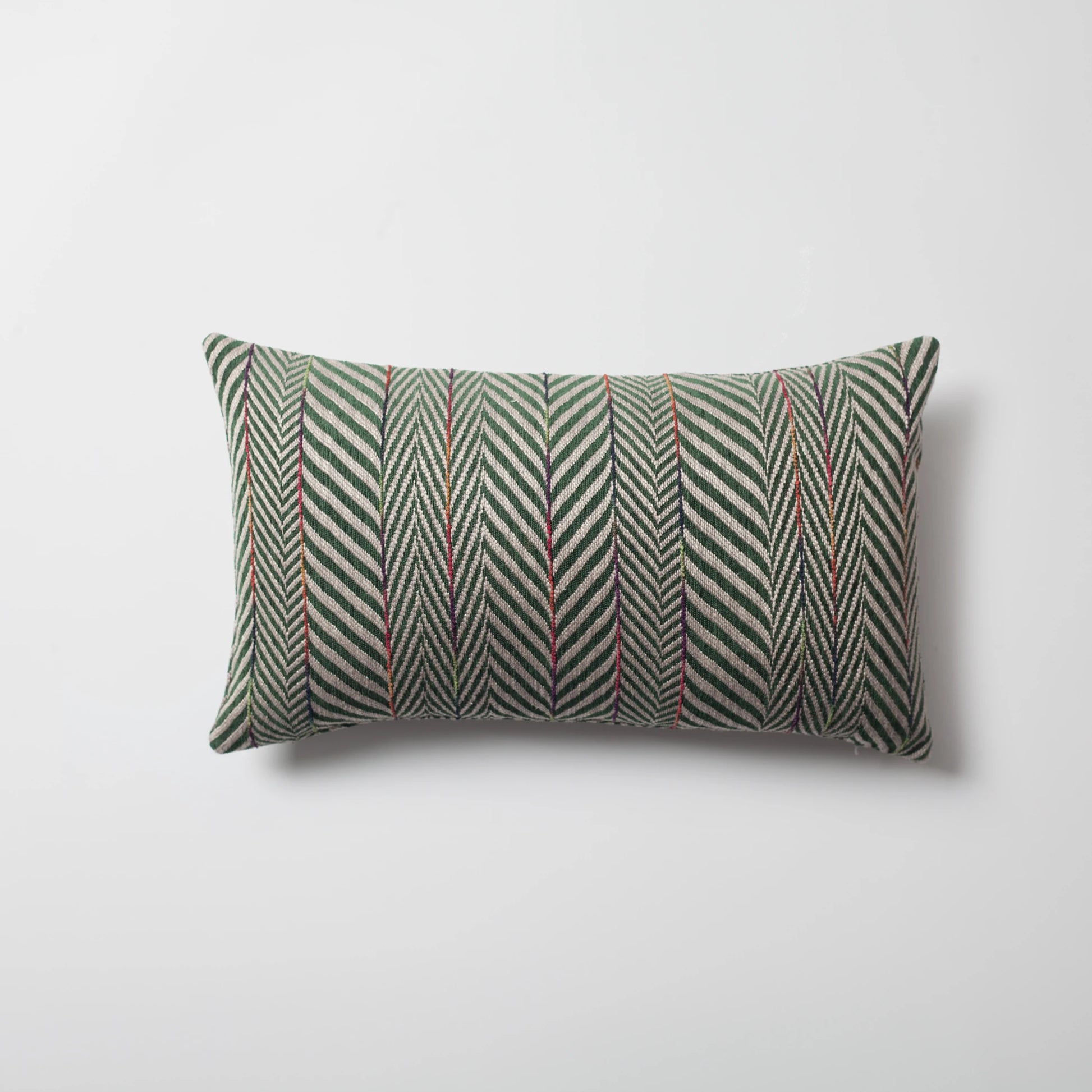 Sense - Keten Degrade Çizgili Balıksırtı Desenli Kırlent 30x50 - Yeşil