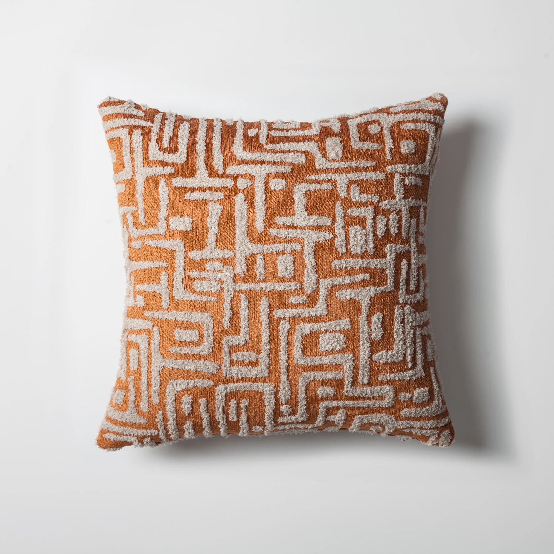 Gilda - Labirent Desenli Kırlent 45x45 - Turuncu