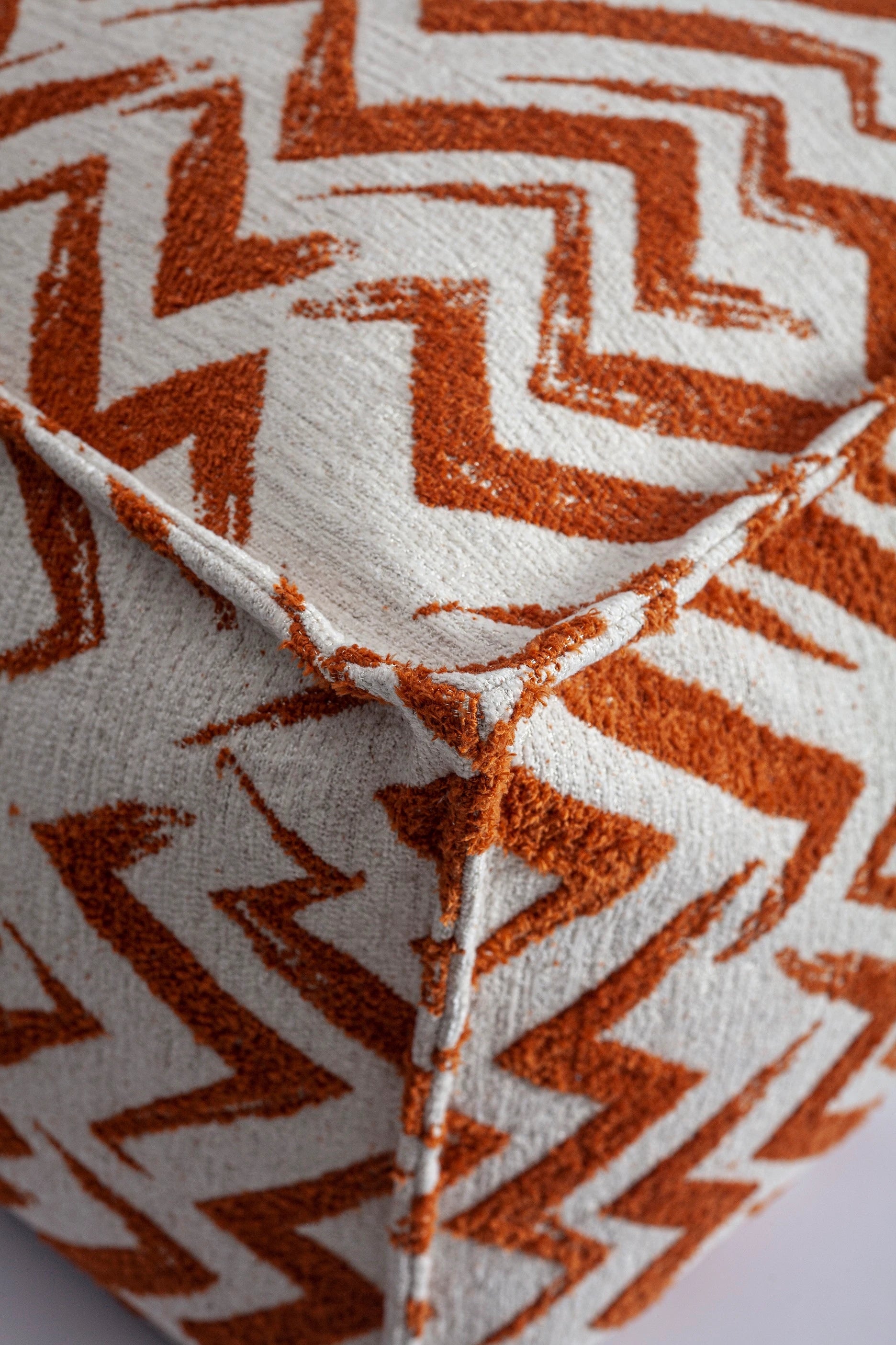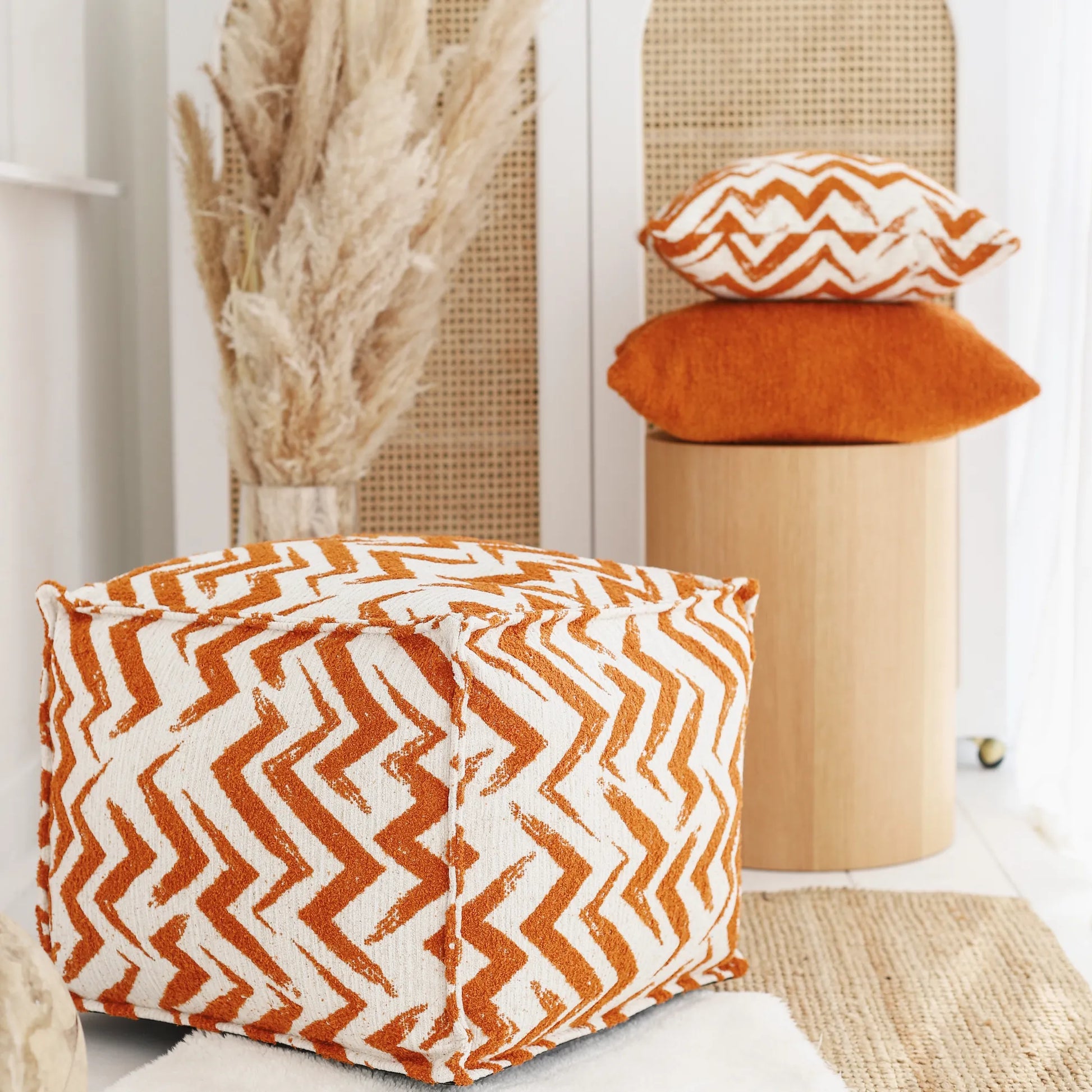 Havana Puf - Zigzag Desenli Puf - Turuncu
