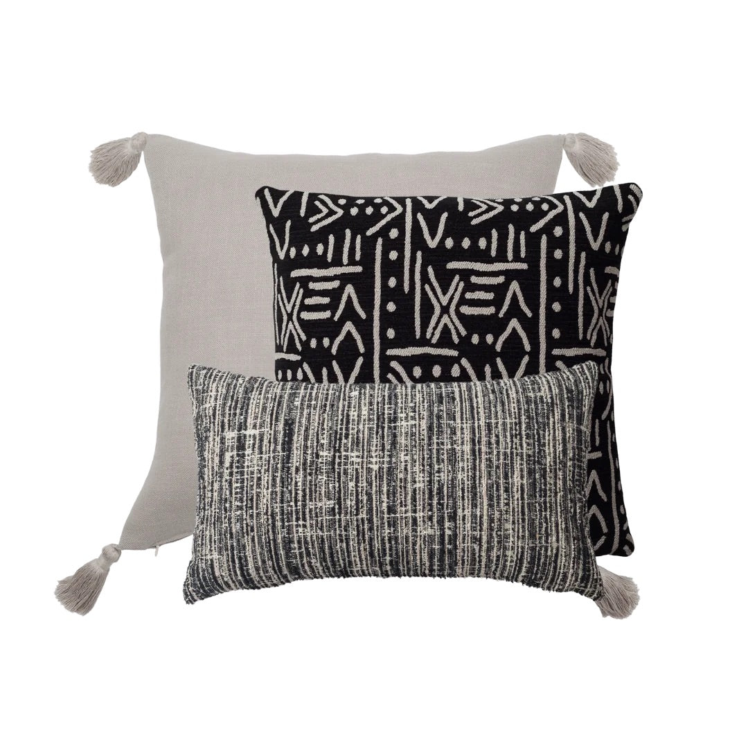 Icon 3'lü Kırlent Kombin Seti, İskandinav stilinin sade ve şık çizgilerini Afrika'nın mistik desenleriyle bir araya getirerek, yaşam alanlarınıza egzotik ve modern bir atmosfer katmak için tasarlandı.