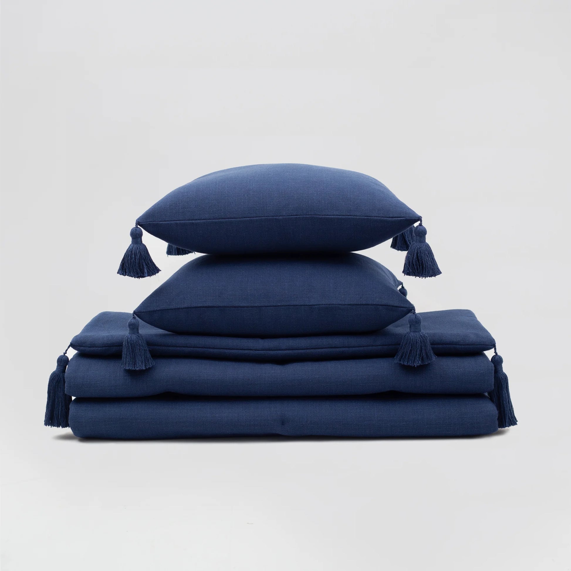 Loom - Keten Püsküllü Yatak Runner + 2 Yastıklı Set - Lacivert