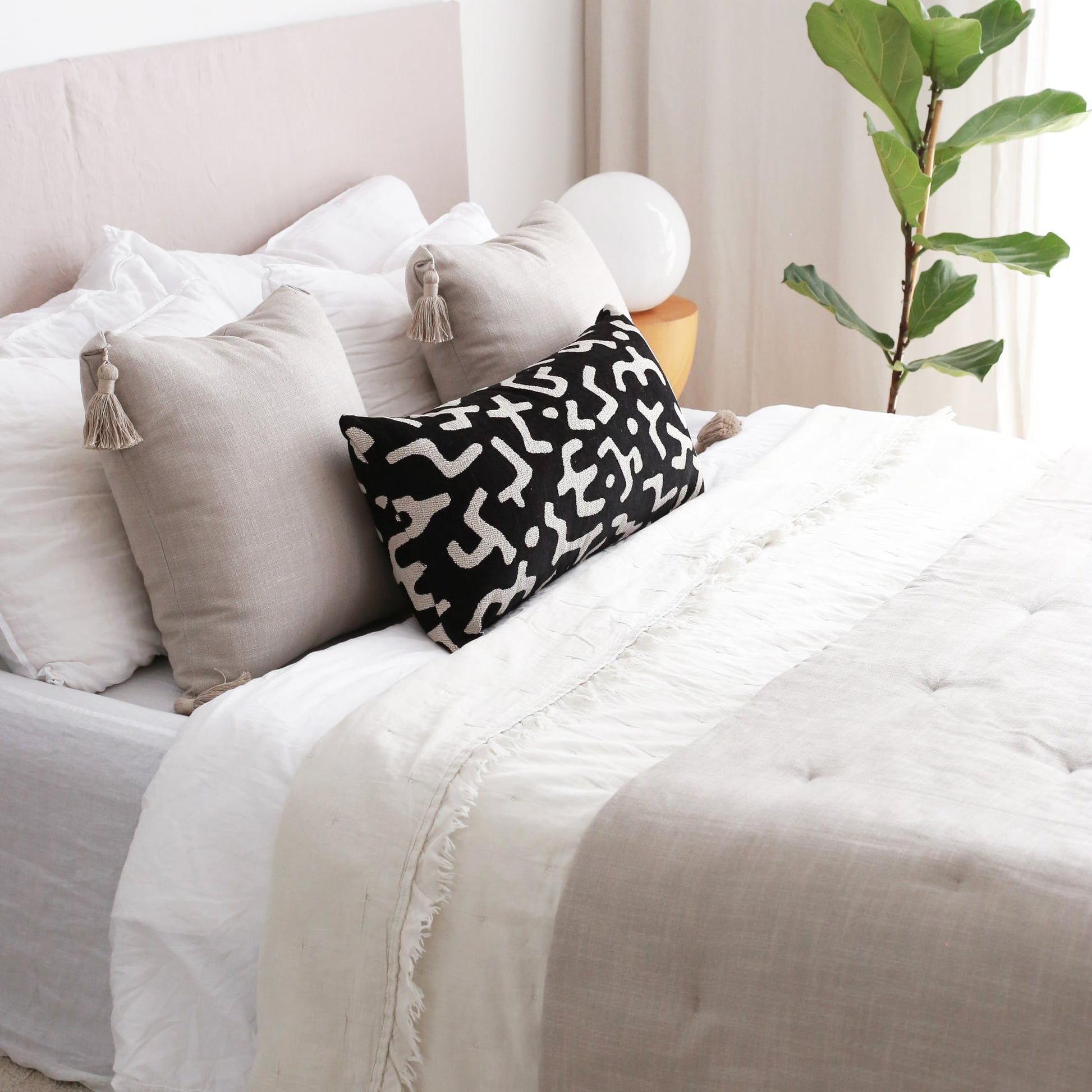 Loom Keten Püsküllü Yatak Runner + 3 Yastıklı Set Nandos, sadece bir yatak örtüsü ve kırlent seti değil, aynı zamanda siyah ve beyazın etnik dansını yansıtan bir yaşam tarzı.