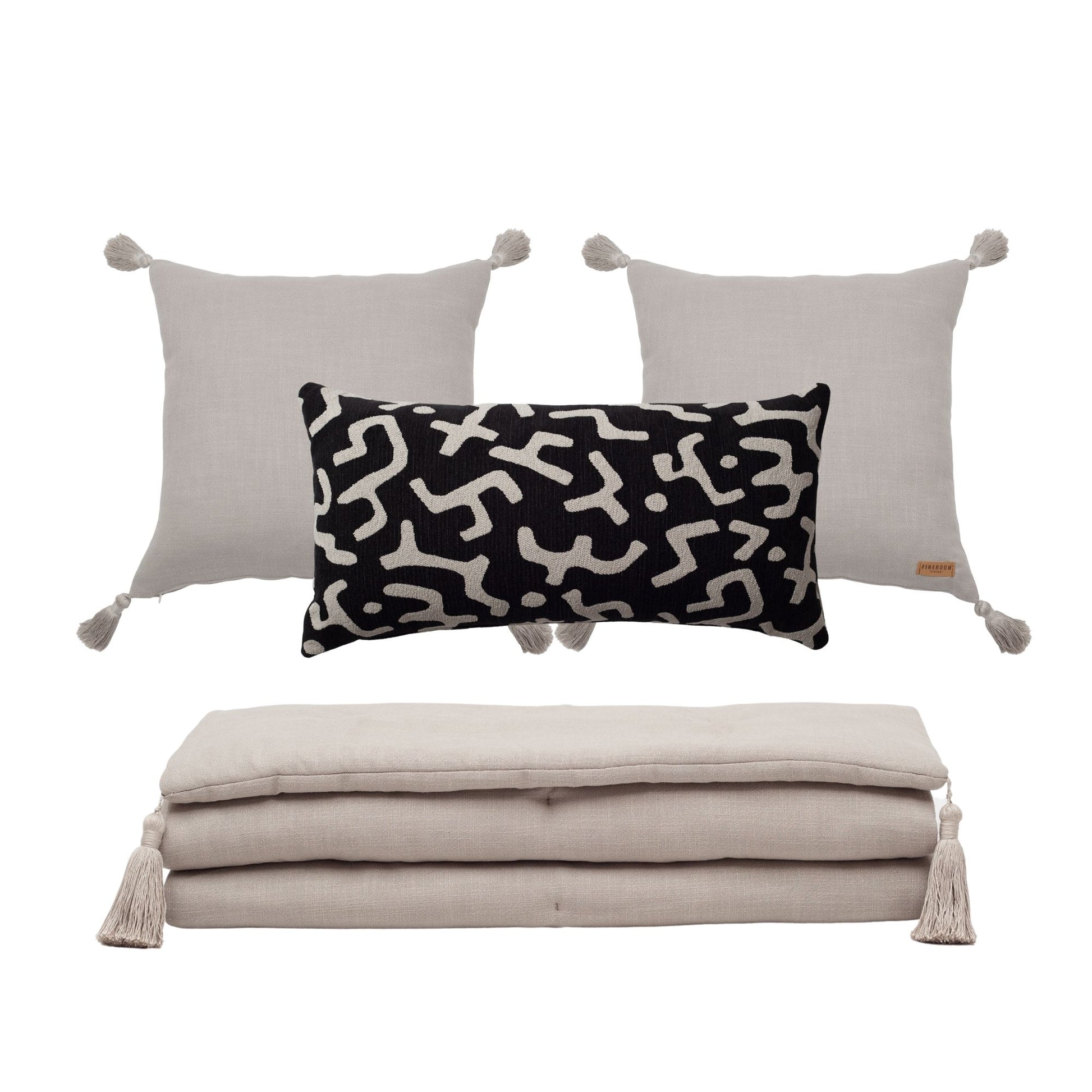 Porto & Capri - Dekoratif Yastık - 3'lü Kombin Set - Siyah & Keten