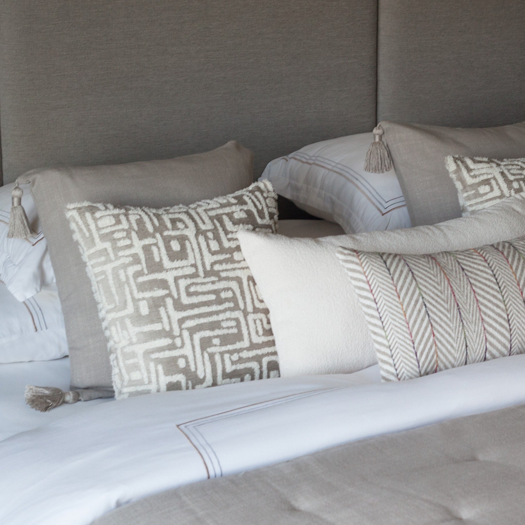 Loom Keten Püsküllü Yatak Runner + 6 Yastıklı Set Gilda Sense, sadece bir dekoratif obje seti değil, aynı zamanda modern zarafetin ve konforun mükemmel birleşimini yansıtan bir yaşam tarzı.