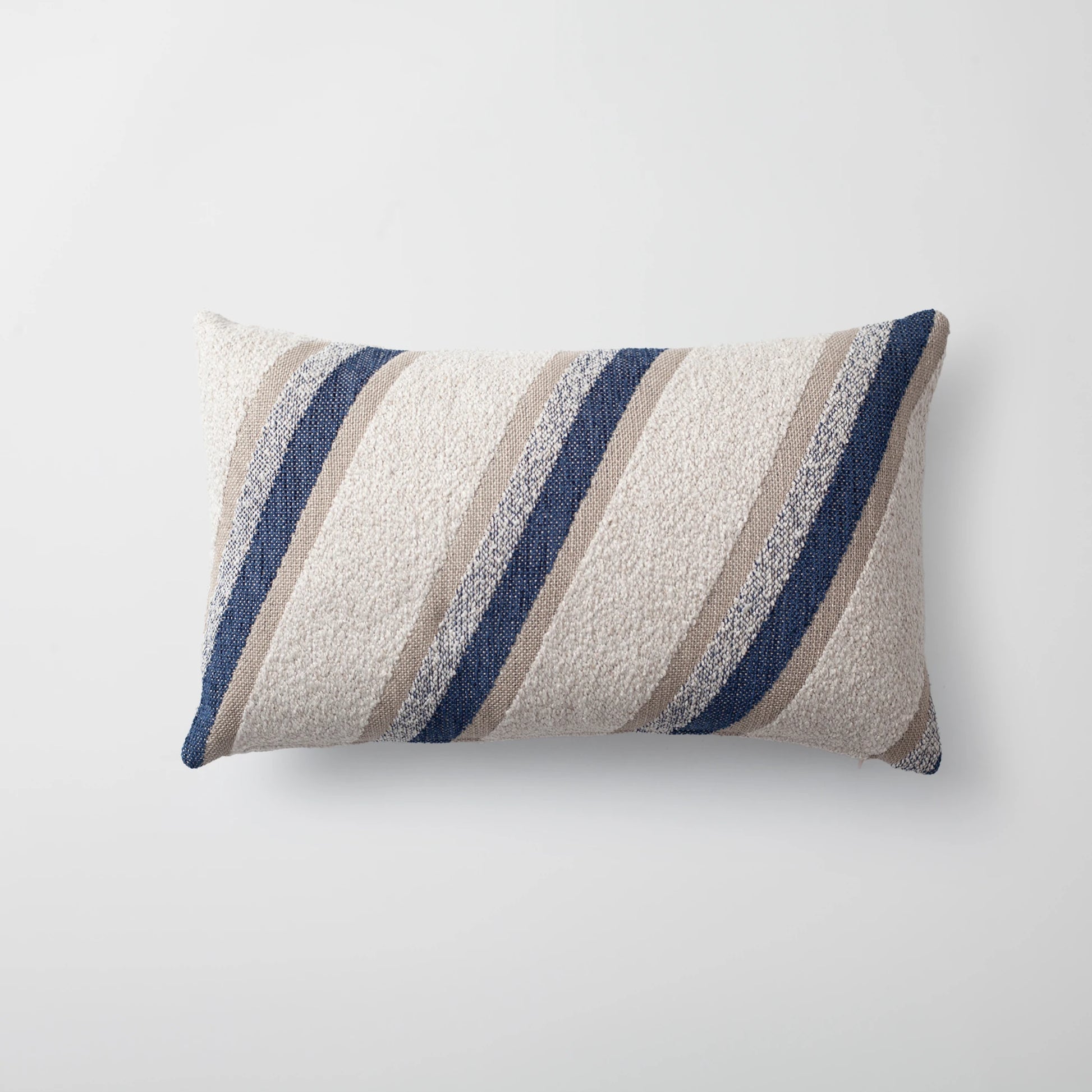 Oblique - Keten Verev Çizgili Desenli Kırlent 30x50 - Lacivert