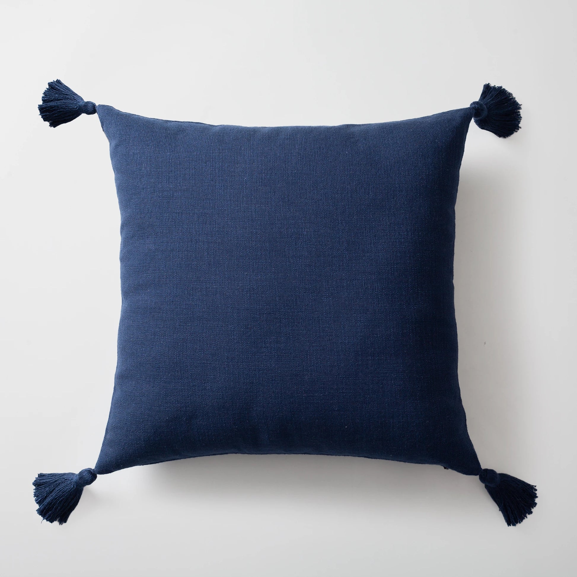 Loom - Viskon Keten %100 Natural Püsküllü 50x50 Kırlent - Lacivert