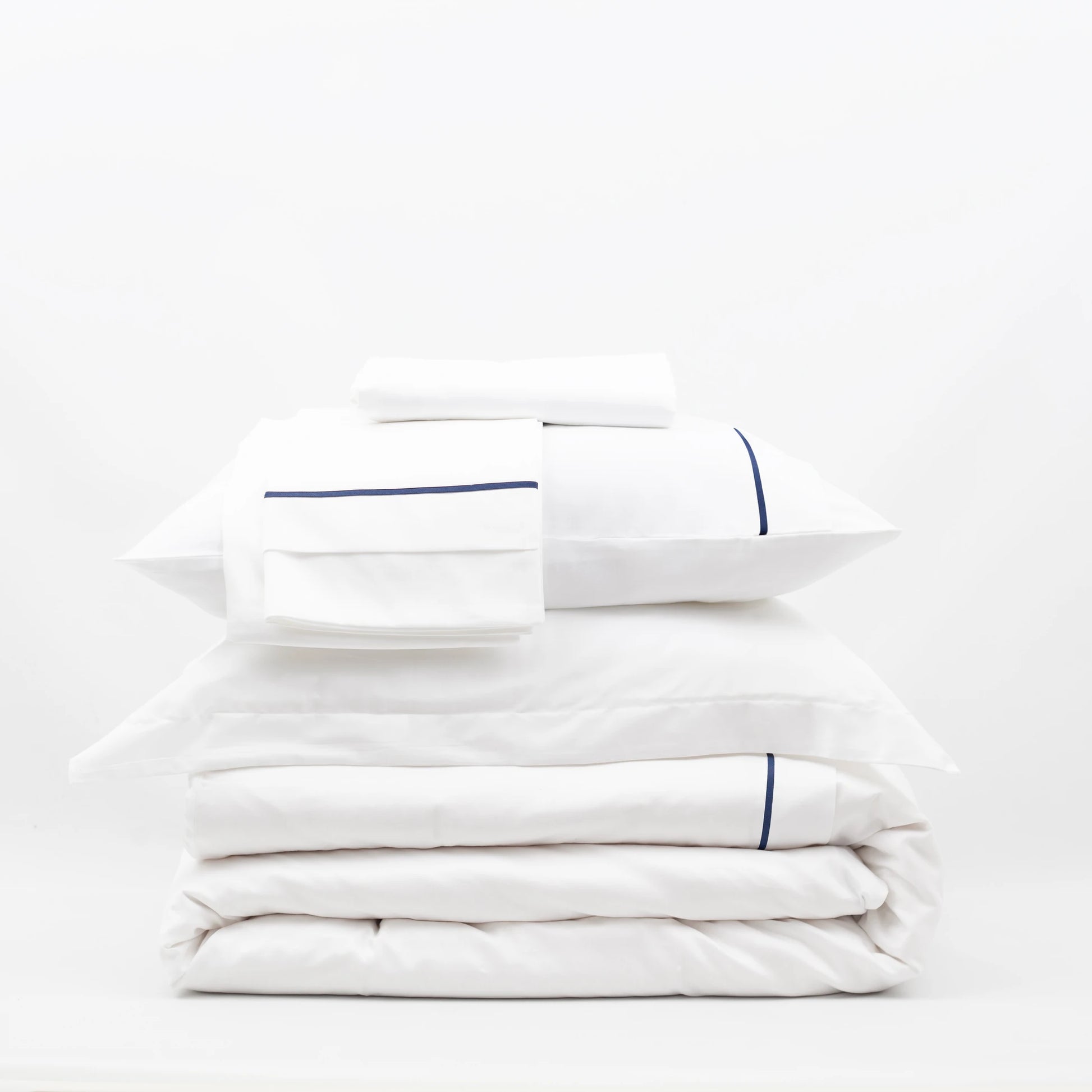 Lusso %100 Pamuk Çift Kişilik Lacivert Biyeli Beyaz Nevresim Takımı, doğal yumuşaklığı ve zarif tasarımıyla yatak odanıza şıklık ve konfor katmak için özenle hazırlanmıştır.