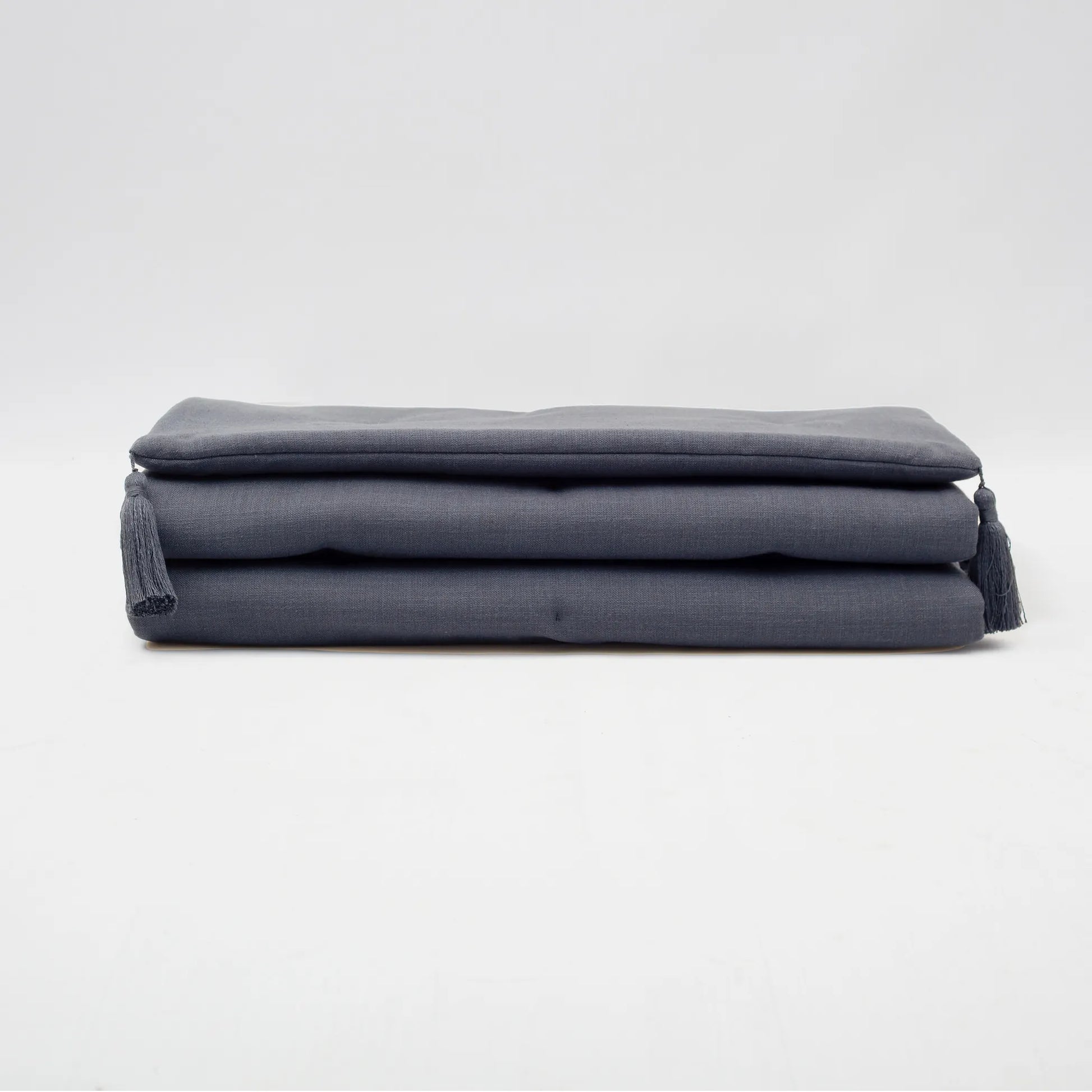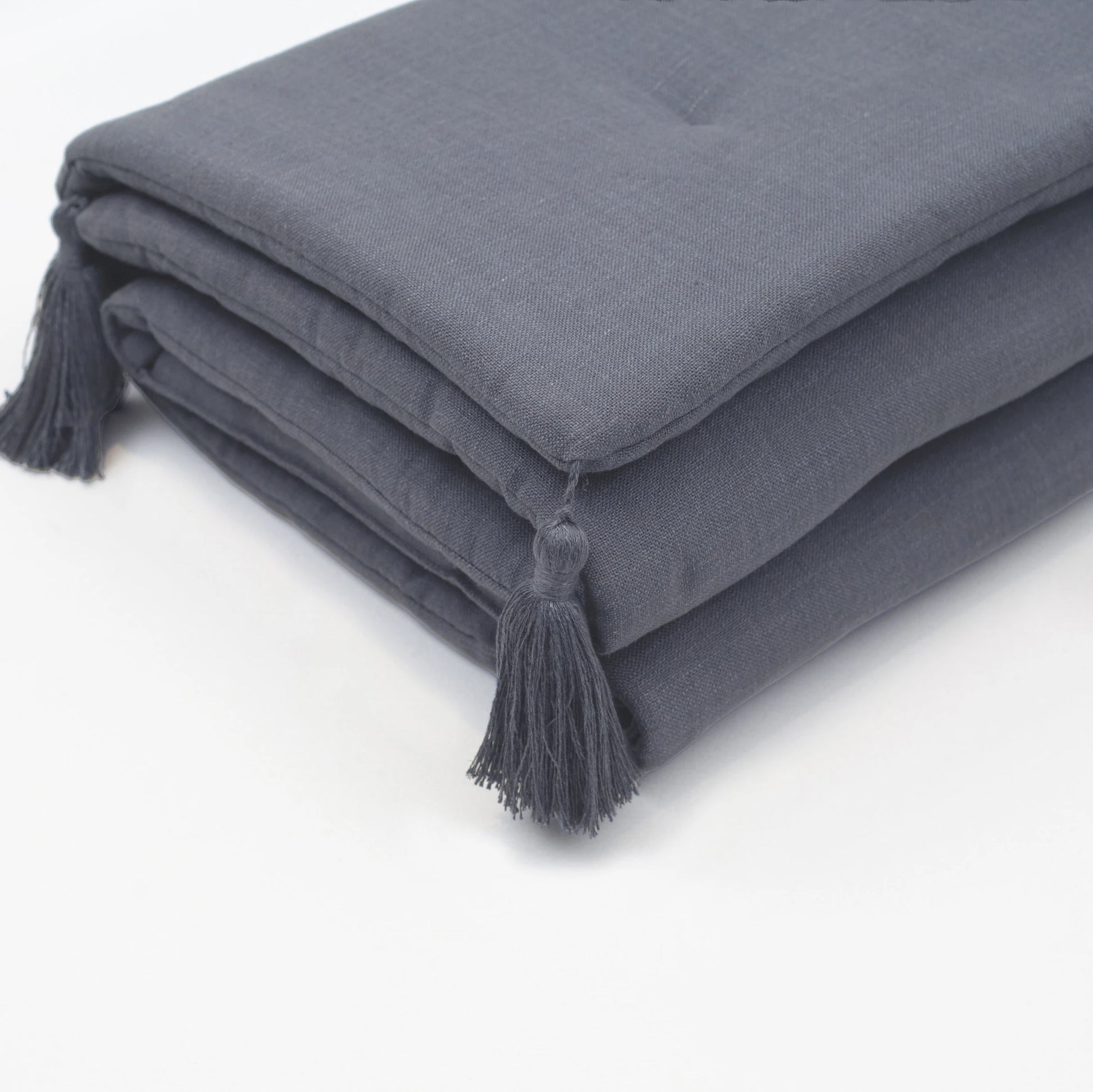 Loom - Keten Püsküllü Yatak Runner (220x70) - Koyu Gri