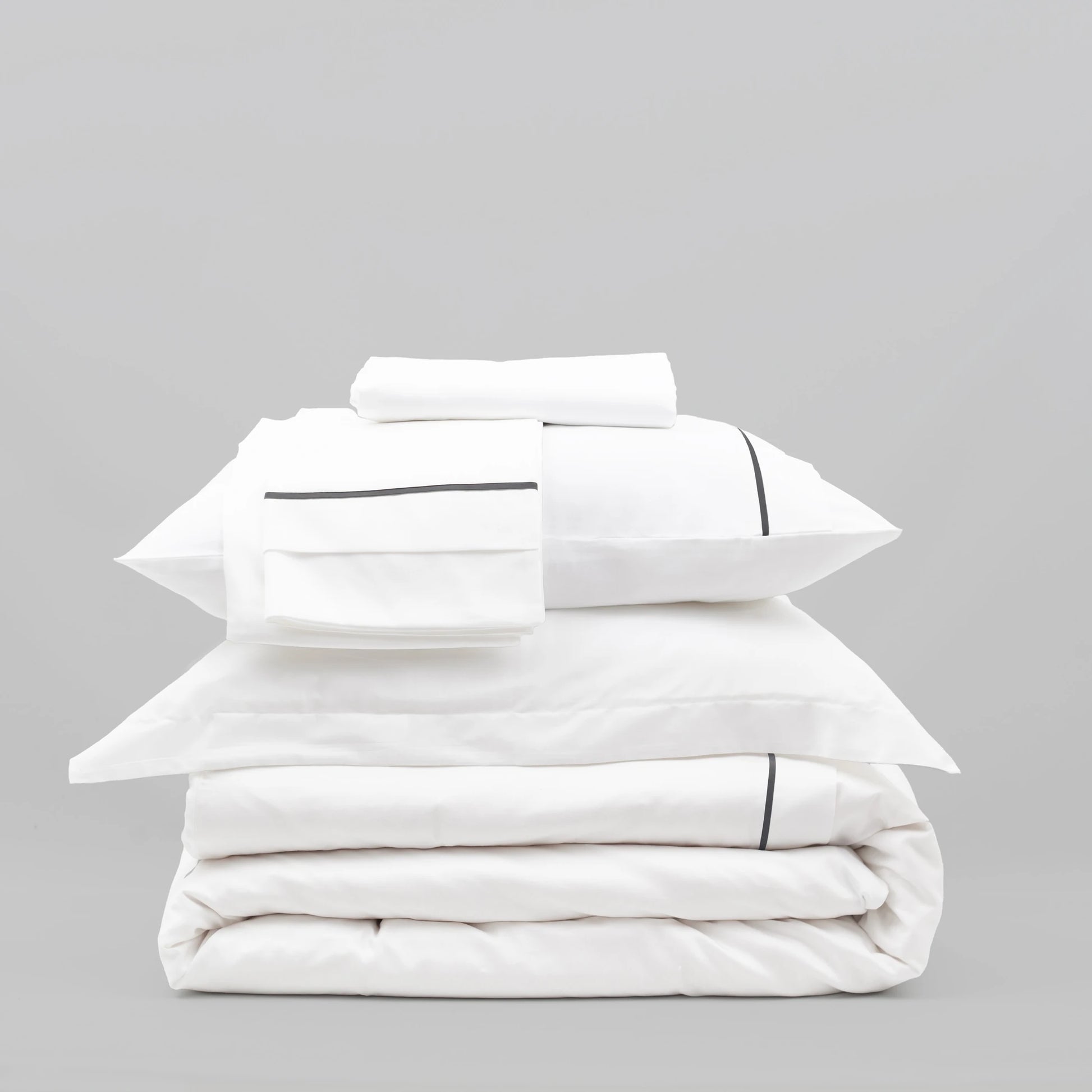 Lusso %100 Pamuk Çift Kişilik Antrasit Biyeli Beyaz Nevresim Takımı