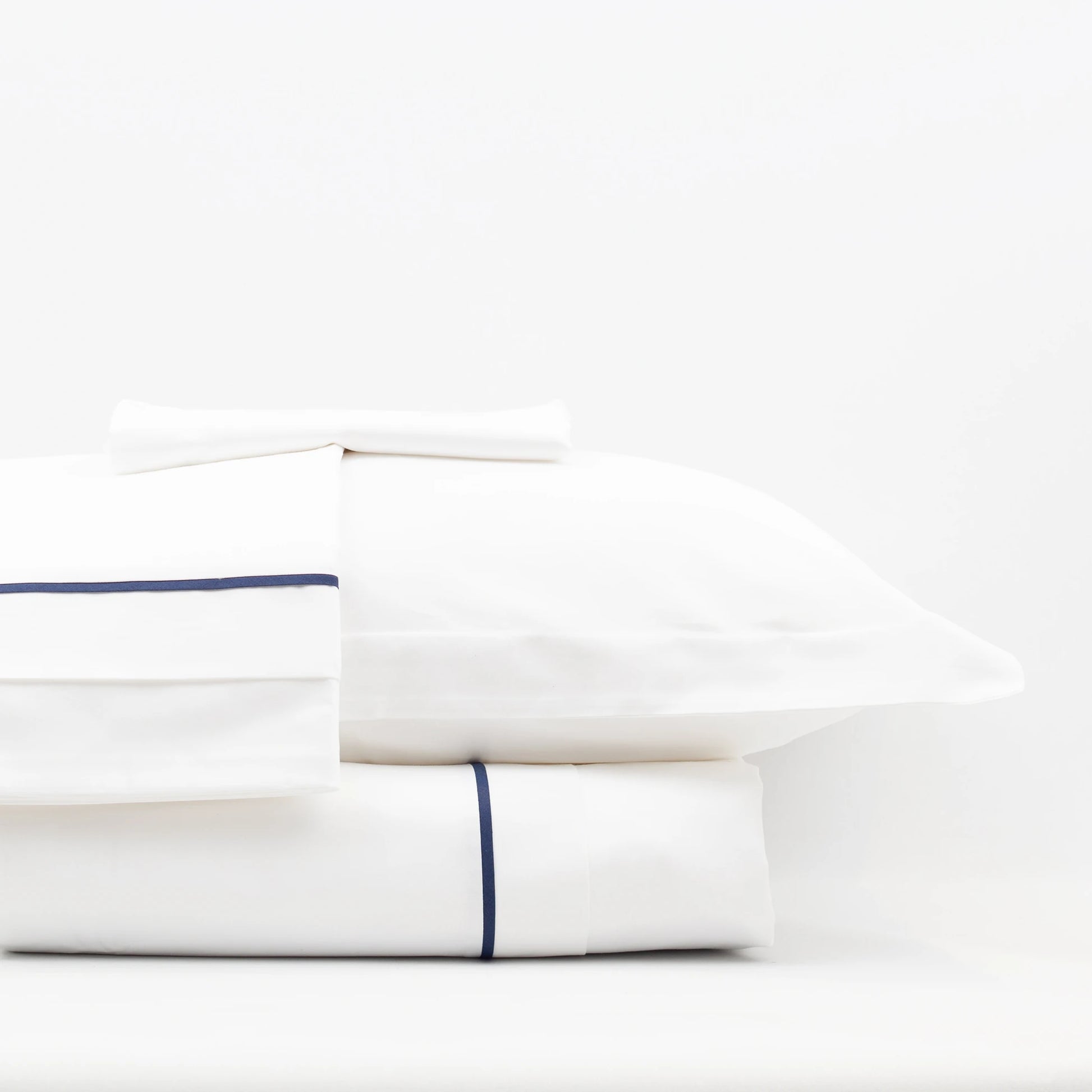 Lusso %100 Pamuk Çift Kişilik Lacivert Biyeli Beyaz Nevresim Takımı