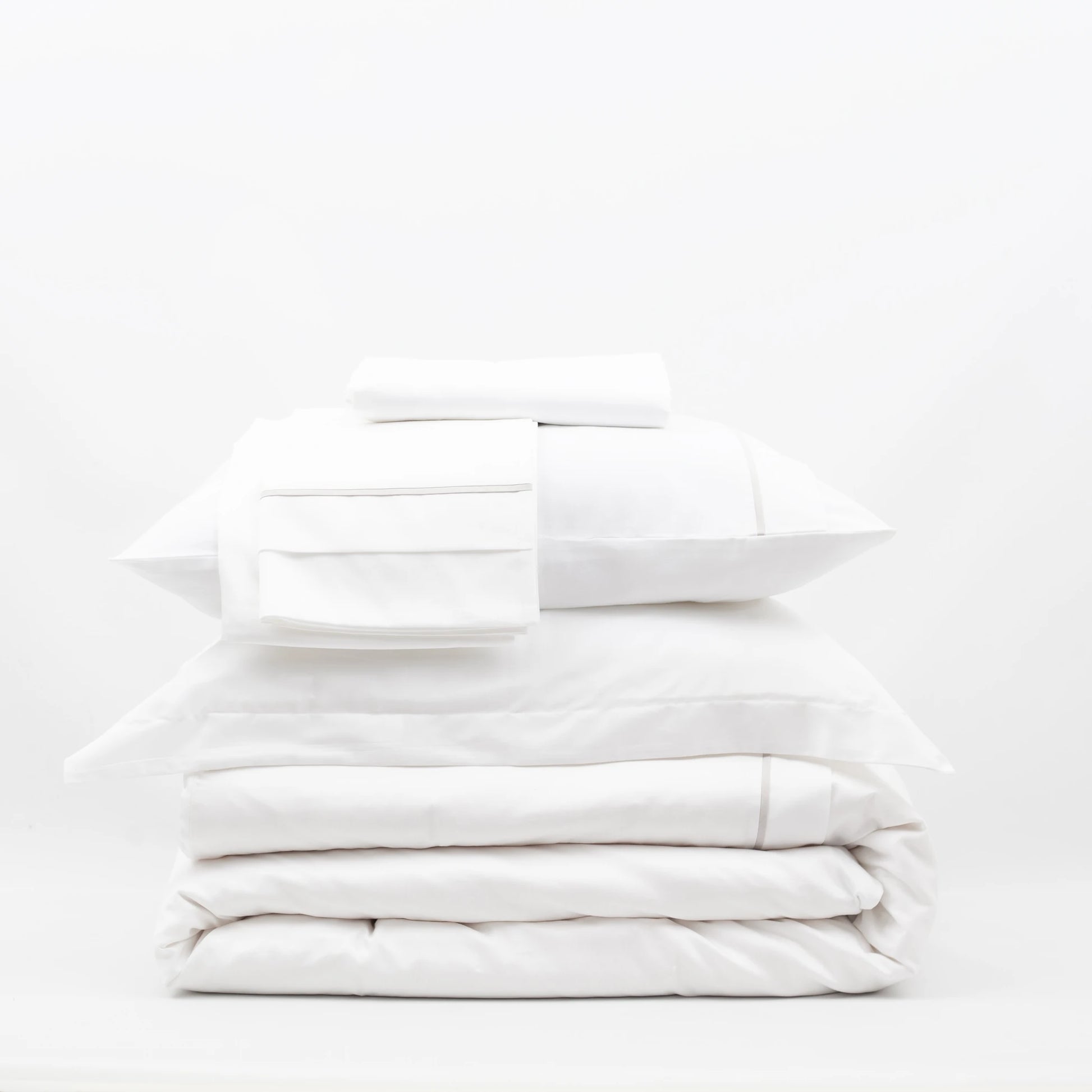 Lusso %100 Pamuk Çift Kişilik Taş Gri Biyeli Beyaz Nevresim Takımı