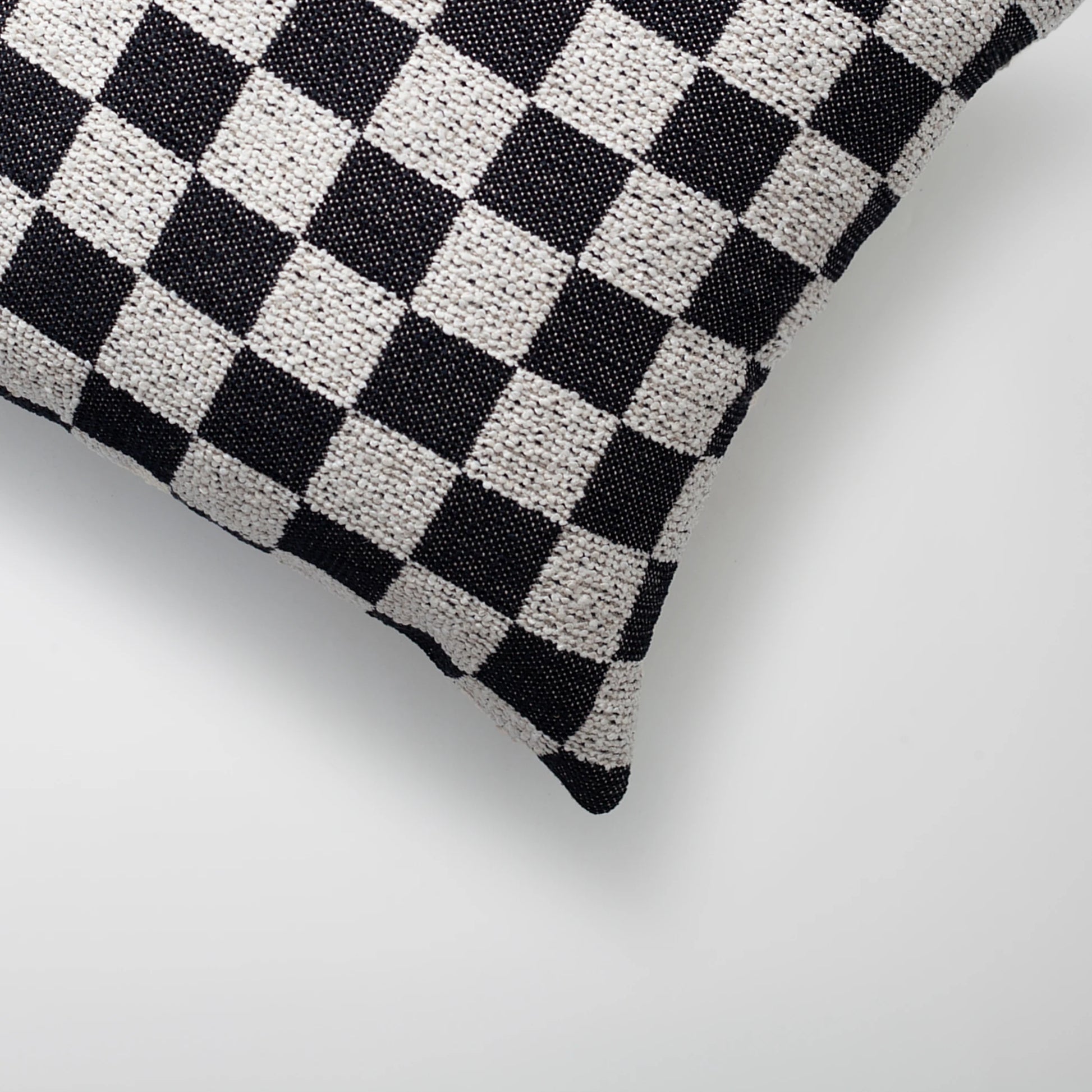 Mojo - Keten Dama Desenli Kırlent 45x45 - Siyah Beyaz