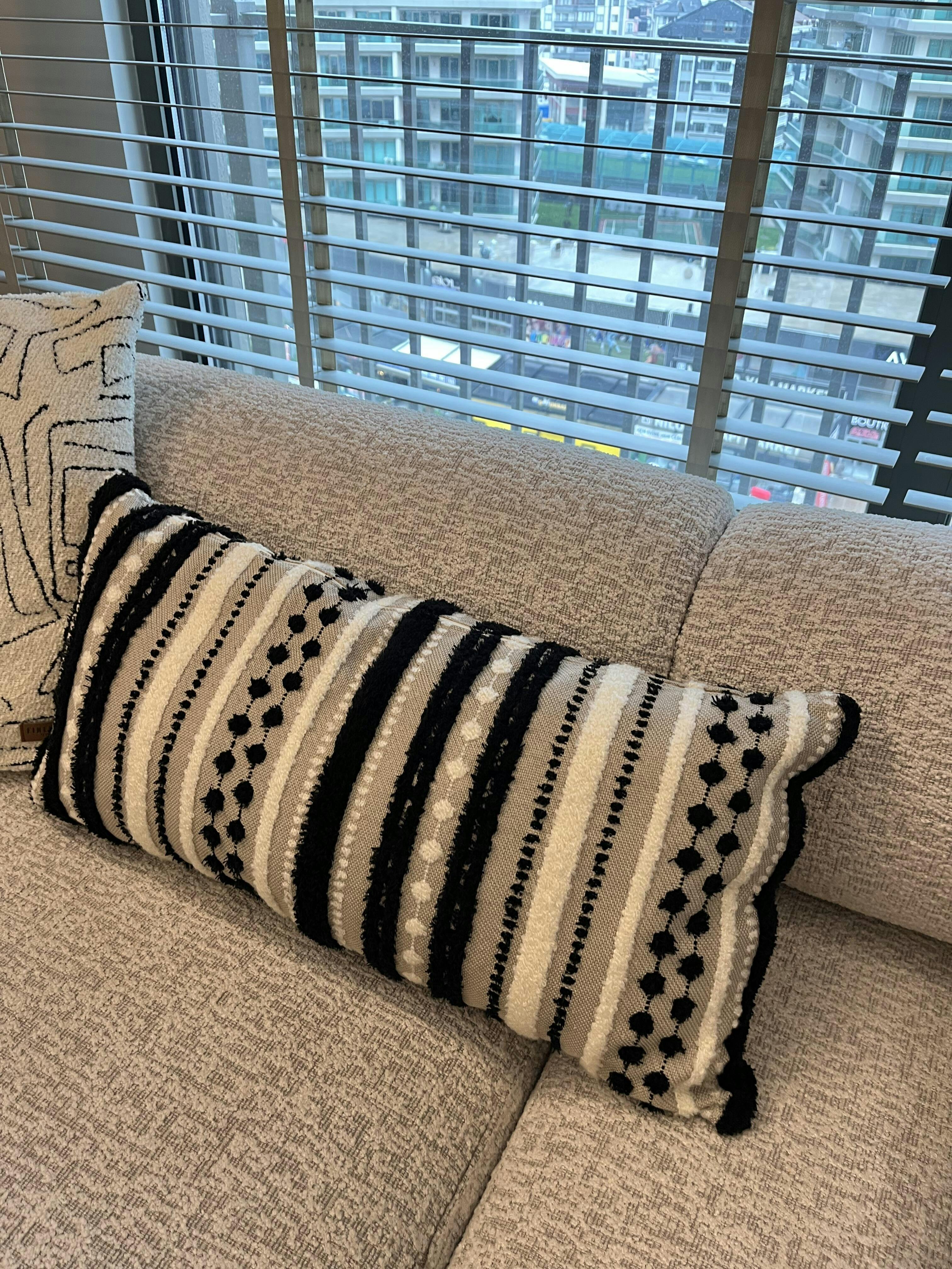 Nomad - Çizgili Çok Renkli Keten Dekoratif Kırlent 35x70 - Siyah & Beyaz