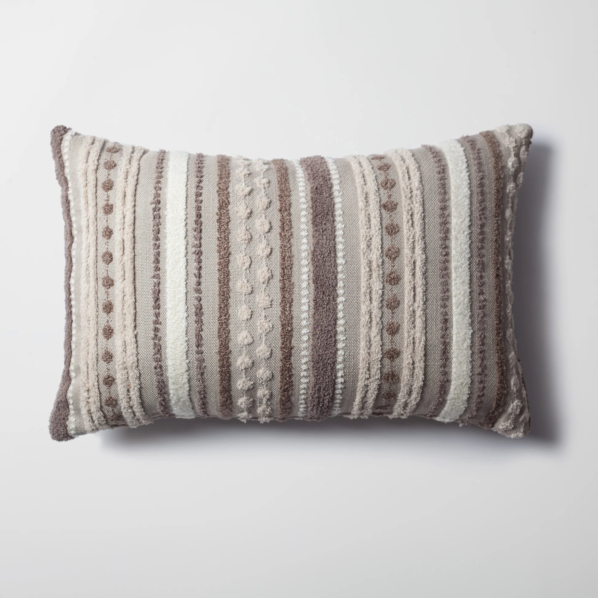 Nomad - Çizgili Çok Renkli Keten Dekoratif Kırlent 40x60 - Bej