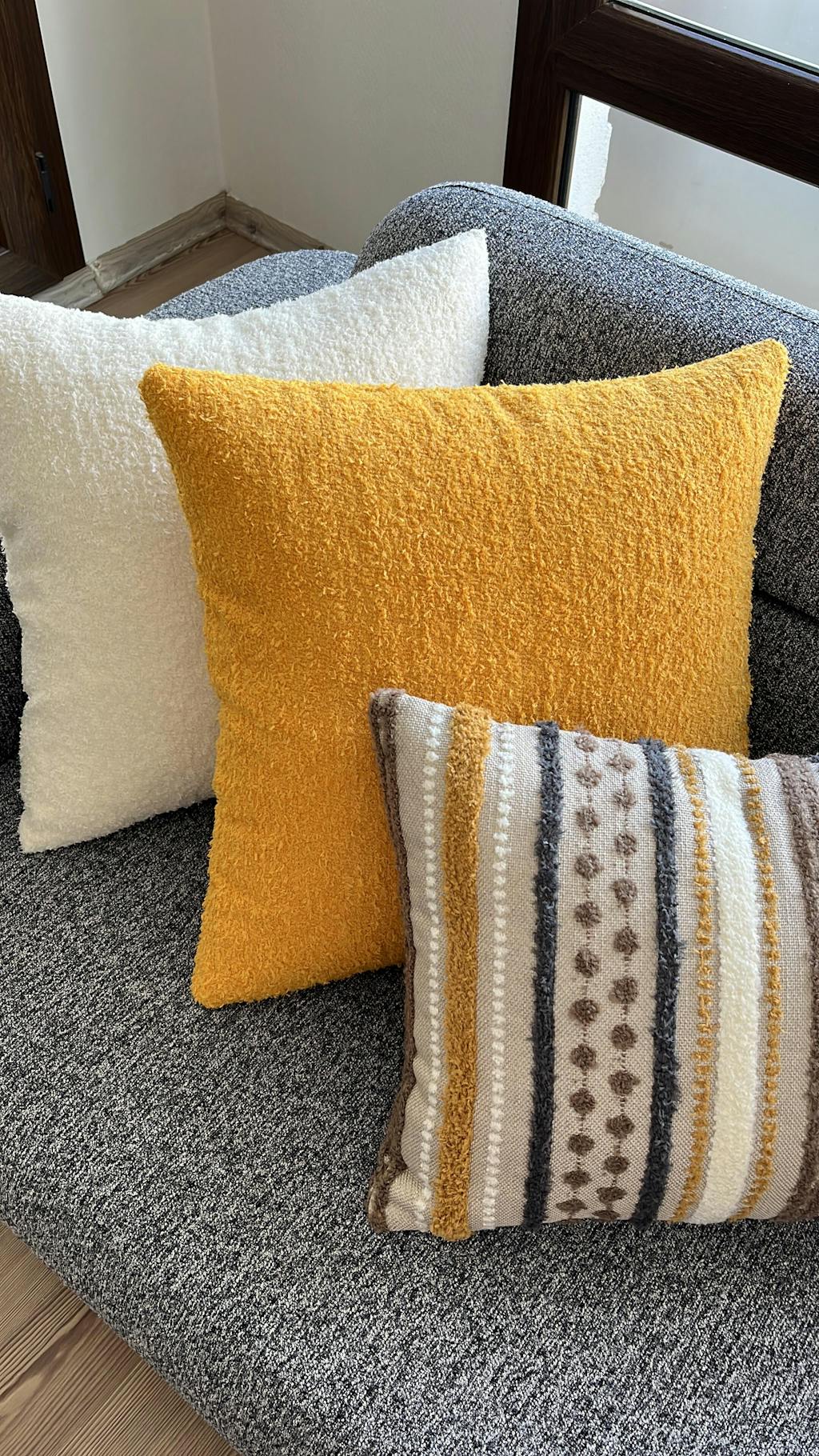 Porto & Gobi - Dekoratif Yastık - 3'lü Kombin Set - Hardal