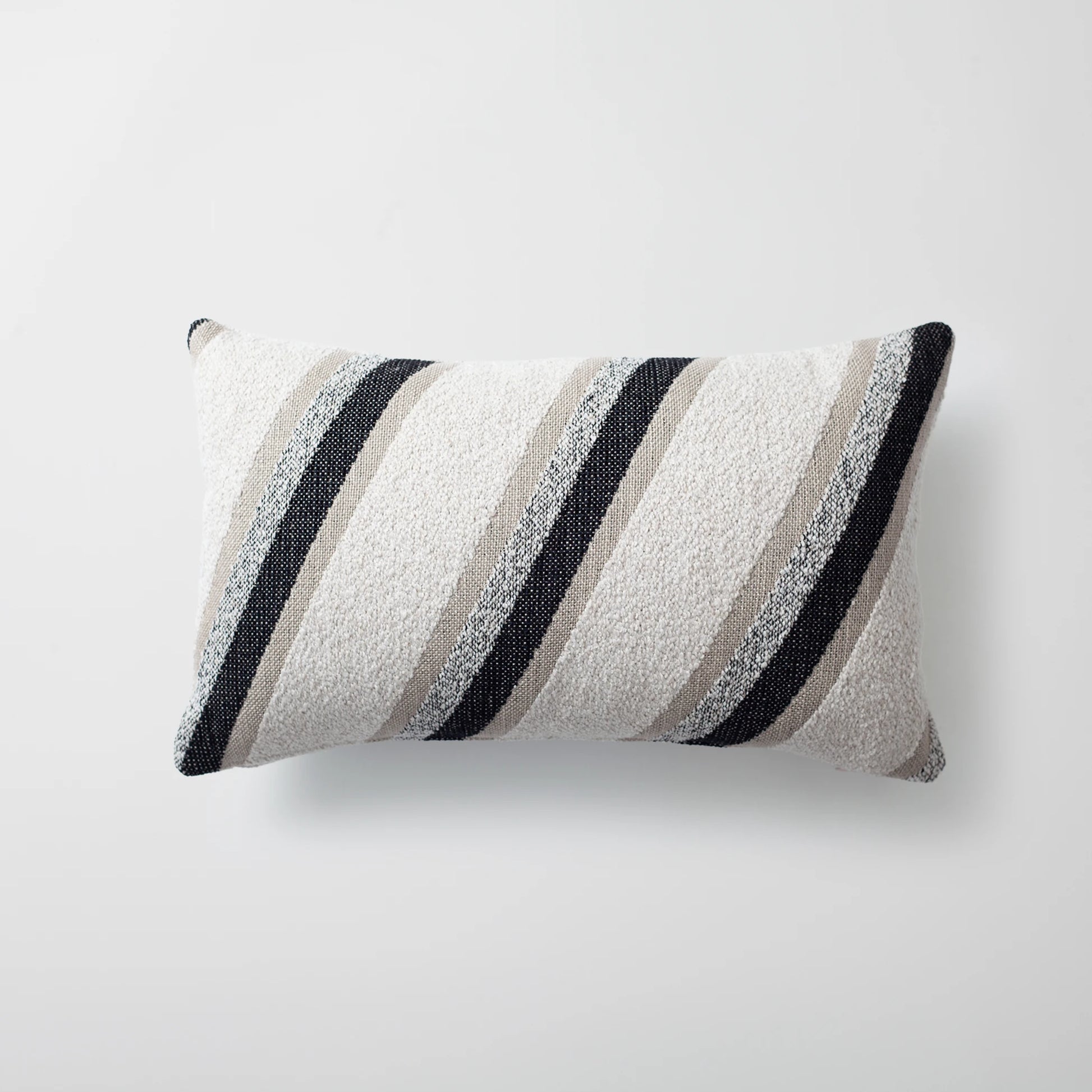 Oblique - Keten Verev Çizgili Desenli Kırlent 30x50 - Siyah