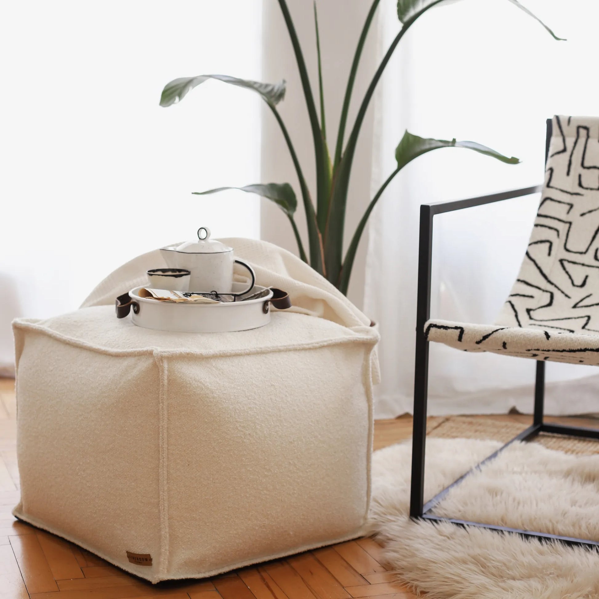 Minimalist tasarımıyla her türlü dekorasyon stiline uyum sağlayan Ovis Kuzu Yünü Puf, hem oturma alanı hem de sehpa olarak kullanılabilen çok yönlü bir parça.