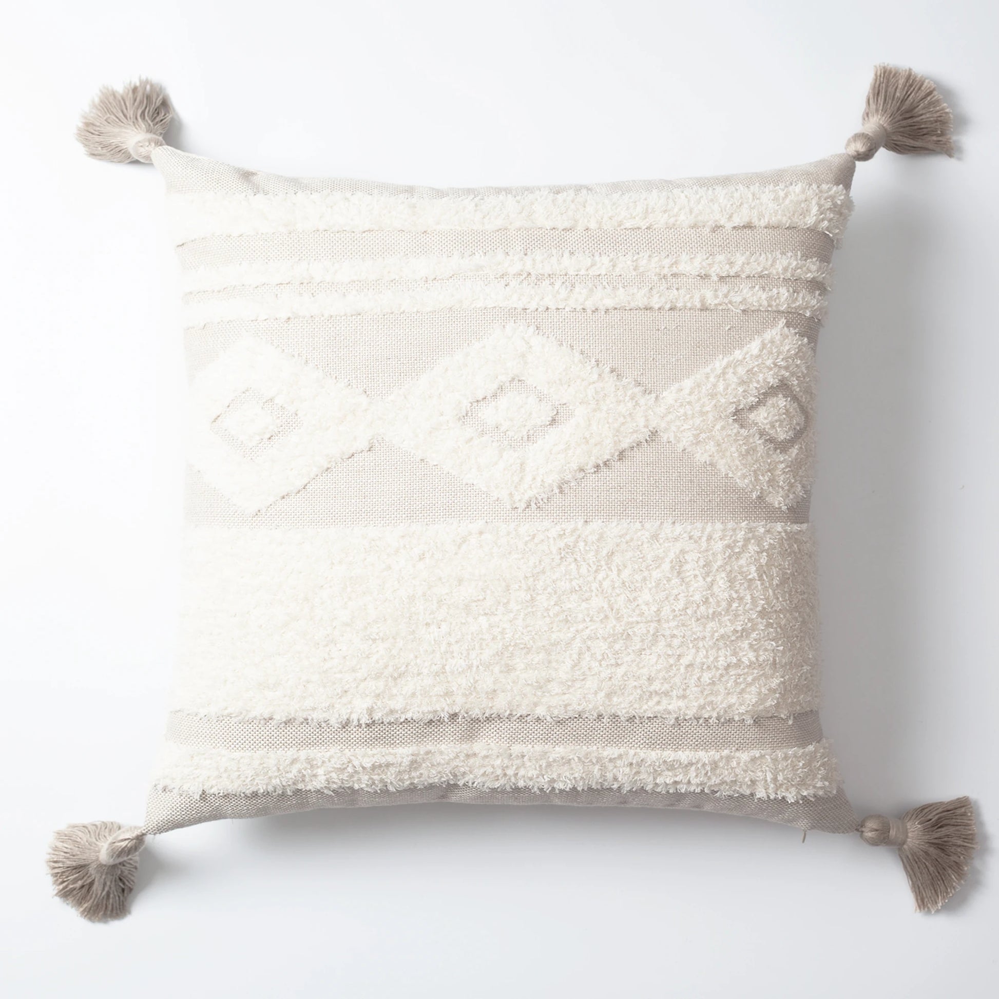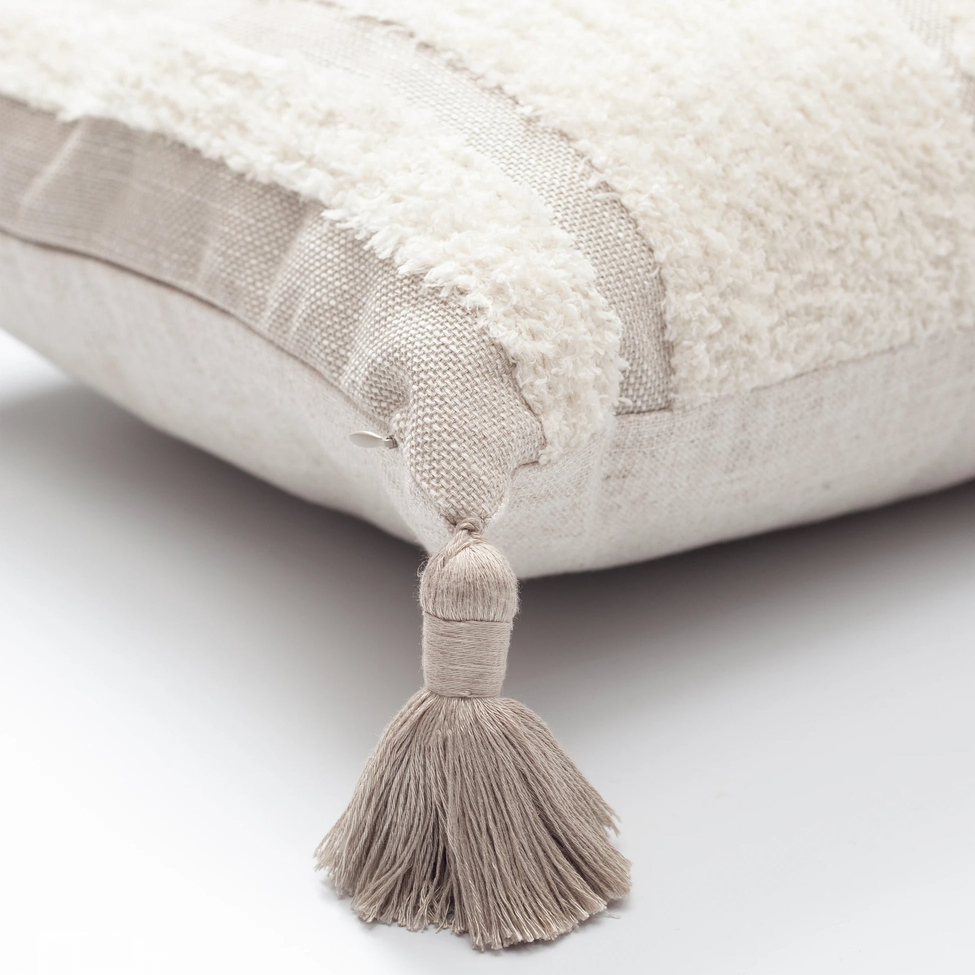 Loom - Viskon Keten %100 Natural Püsküllü 50x50 Kırlent - Keten