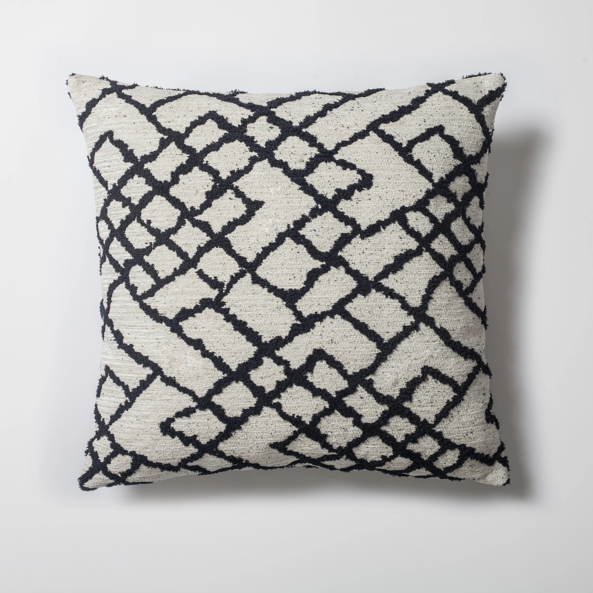Maya - Etnik Kilim Desenli Kırlent (50x50), siyah ve beyaz renklerdeki modern baklava kilim deseniyle dikkat çekiyor.